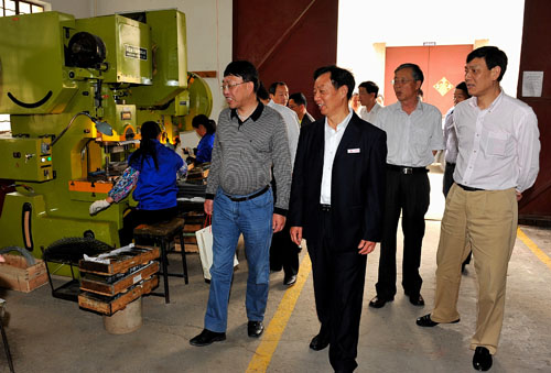 領(lǐng)導和嘉賓參觀(guān)訂壓簧車(chē)間