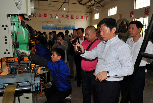 領(lǐng)導和嘉賓參觀(guān)自動(dòng)沖床車(chē)間