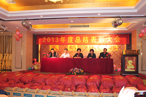 2014年元月28日下午,江蘇天鵝樂(lè )器有限公司2013年年終工作會(huì )議在靖江喜洋洋大酒店隆重召開(kāi)。公司董事長(cháng)陳紅梅、總經(jīng)理丁益同等領(lǐng)導與200多名職工歡聚一堂。