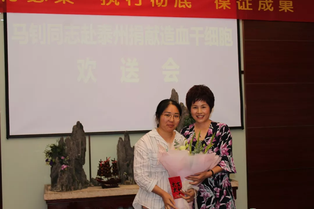 10月7日下午,天鵝公司舉行馬釗同志赴泰州捐獻造血干細胞歡送會(huì ),馬釗作為天鵝公司新產(chǎn)品車(chē)間的一名普通員工,更是一位熱血奉獻青年,是靖江第5位捐獻造血干細胞的志愿者,她的這種大愛(ài)精神讓靖江人為之感動(dòng),天鵝公司的家人們都為之自豪,董事長(cháng)陳紅梅現場(chǎng)贈與獎金,以表彰馬釗同志“我為人人、互助互愛(ài)”的奉獻精神。