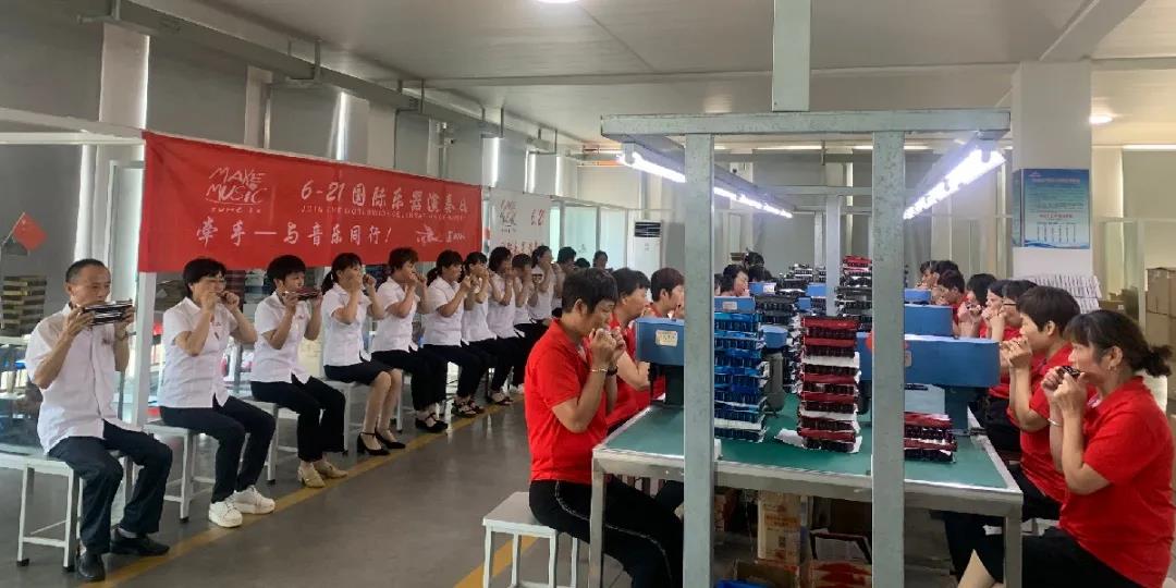 為慶祝中國共產(chǎn)黨百年華誕,充分展示天鵝公司推動(dòng)音樂(lè )教育“三進(jìn)”工程的成果,天鵝公司在6月21日這一天組織12個(gè)口琴樂(lè )隊在公司廣場(chǎng)、音樂(lè )廳及多個(gè)車(chē)間舉行口琴演出聯(lián)誼活動(dòng)。天鵝樂(lè )器作為聯(lián)合主辦單位,聯(lián)合了紫丁香天鵝口琴社、嘉興市嘉善縣青少年宮、嘉興琴藝口琴培訓中心、南京強國口琴藝術(shù)團、山東德州大眾口琴樂(lè )團、大同市御河九號口琴隊、蘭州市城關(guān)區東崗小學(xué)、云南知青口琴樂(lè )團、青島口琴大聯(lián)盟、東臺市老來(lái)樂(lè )藝術(shù)團等單位共同開(kāi)展“6·21國際樂(lè )器演奏日”,體現音樂(lè )帶來(lái)的快樂(lè ),給人注入實(shí)實(shí)在在的活力和動(dòng)力。