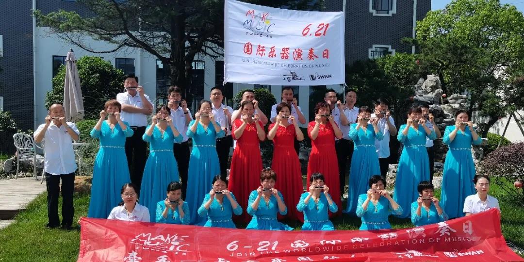 今年的“6·21國際樂(lè )器演奏日”活動(dòng),天鵝公司和聯(lián)合舉辦的單位共同參與演出的團隊共有26個(gè),參加演出人員達700人,惠及觀(guān)眾8000多人,得到了社會(huì )各界的廣泛關(guān)注。天鵝公司是中國樂(lè )器協(xié)會(huì )常務(wù)理事、口琴分會(huì )副會(huì )長(cháng)單位,中國樂(lè )器行業(yè)50強企業(yè)。近年來(lái)天鵝樂(lè )器一直致力于音樂(lè )教育和樂(lè )器普及推廣?!白屢魳?lè )成為生活的剛需,讓樂(lè )器成為家庭的標配”是我們共同努力的目標。